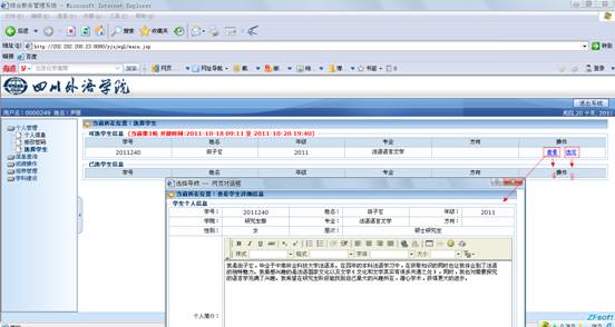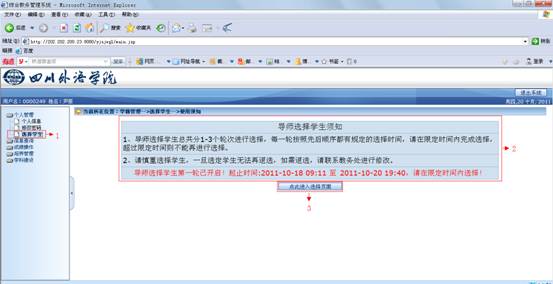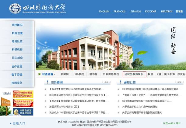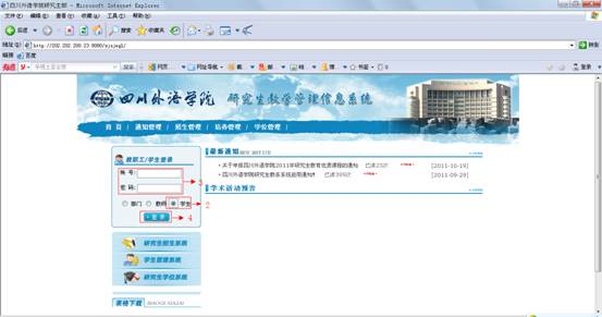 1.在学校内网(外网请使用VPN)登陆“四川外国语大学研究生教学管理信息系统”:http://202.202.200.23:8080/yjsjwgl/