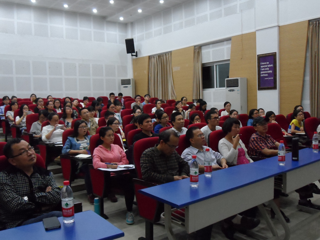 熊沐清教授做客界面研究与认知诗学论坛 界面研究与认知诗学论坛(第57期)于2015年10月14日晚在四川外国语大学国际大厦1314报告厅如期举行。本次活动特邀四川外国语大学熊沐清教授,做了题为“‘叙事转向’的界面效应──语言、文学、教育等领域的叙事研究”的主题讲座,现场由肖谊教授主持,胡安江教授、姜孟教授和赵永峰教授等近百名师生参加。 首先,熊教授对界面研究的涵义与研究类型作出简明介绍。其研究类型包括:一、学科之间的整体性互涉;二、衍生型界面研究;三、交织型界面研究。此外,熊教授还介绍了大量相关外国书籍以展示界面研究的广阔发展前景与视野。 接着,熊教授通过“问题”生动地引入了“叙事”这一主题。他围绕何为叙事,叙事转向,名家论叙事,语言学中的叙事研究,文学与文化中的叙事研究,以及教育教学中的叙事探索几大模块,展开了精彩的讲解。随后,熊教授还给大家分享了一些读书名言,并介绍了大量的国外界面研究著作。这些书籍涵括了近些年的热点研究领域,为科研提供了一些新的思路。 活动结束前,肖谊教授组织与会同学向熊教授现场提问。熊教授旁征博引深刻详细解答了同学们的各种困惑,并提出在教学过程中教师调动学生的想象力,情感,创造力是激发学生兴趣的有效手段。与会师生纷纷表示受益良多,本次活动圆满结束。