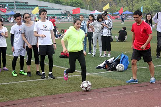 2016年4月15日下午2:30,2016川外春季运动会学生组混合足球射门项目在西区运动场拉开帷幕。 派出由15位同学组成的代表队参加比赛。赛前,队员们便在运动场上认真专注地进行着最后的练习。比赛一开始,所有队员都全神贯注投入比赛,辅以完美的默契和配合,在5分钟内共踢进32个球,取得全校第一名的优异成绩!