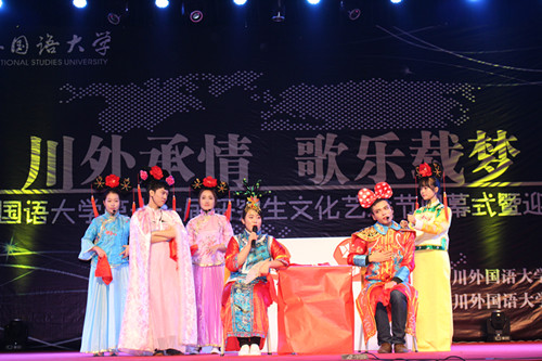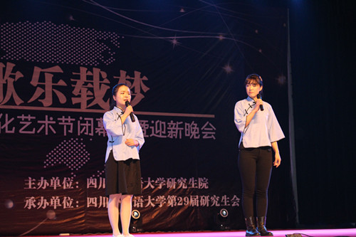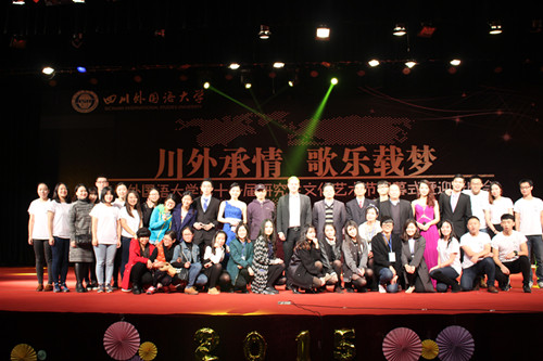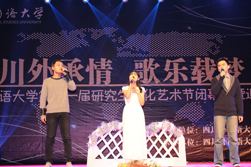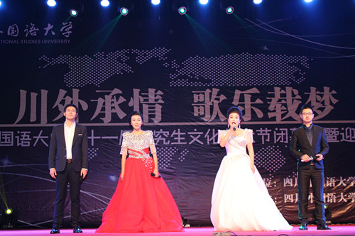 11月26日晚上7点,2015·四川外国语大学第十一届 研究生文化艺术节闭幕式暨迎新晚会于四川外国语大学大礼堂隆重举行。四川外国语大学校长李克勇教授、 及各研究生培养单位的领导和师生们共同观看了晚会。