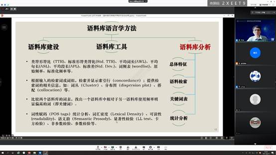 4月19日下午,西南大学外国语学院胡显耀教授应邀参加四川外国语大学语料库语言学系列讲座第三场。本次系列学术活动由 主办,英语学院承办,科研处、语言智能学院、外国语文研究中心等单位协办。胡显耀教授做了题为“语料库文体统计学与应用”的线上讲座,该讲座由我校英语学院硕士导师苏杭教授主持,600余位校内外师生通过腾讯会议平台参加了本次讲座。