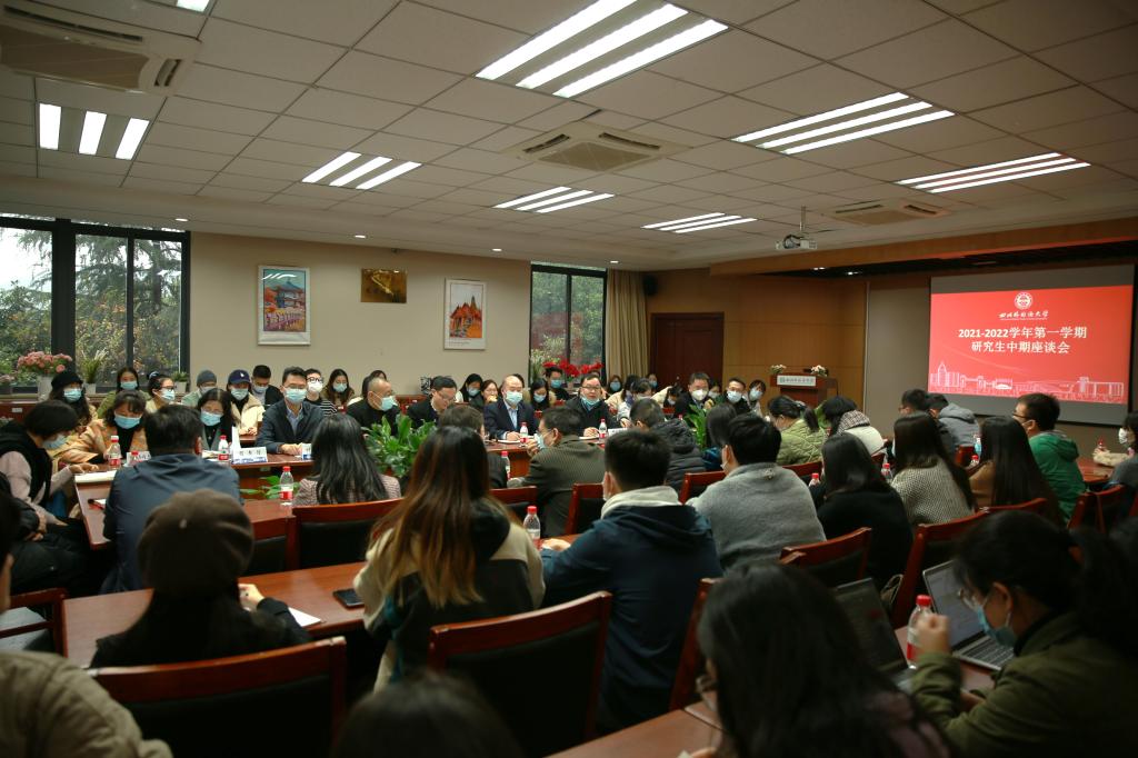 为搭建各培养学院、相关职能部门与研究生的交流、沟通平台,进一步优化资源配置,不断提高研究生教育教学质量,2021年11月11日下午, 在立德楼C216组织召开2021-2022学年第一学期研究生中期座谈会。本次座谈会由 院长赵永峰主持,王仁强副校长, 、学生处、招生就业处、后勤基建管理处、计划财务处、国际合作与交流处、网络信息中心、图书馆等相关职能部门负责人,各培养学院负责人及研究生代表出席。