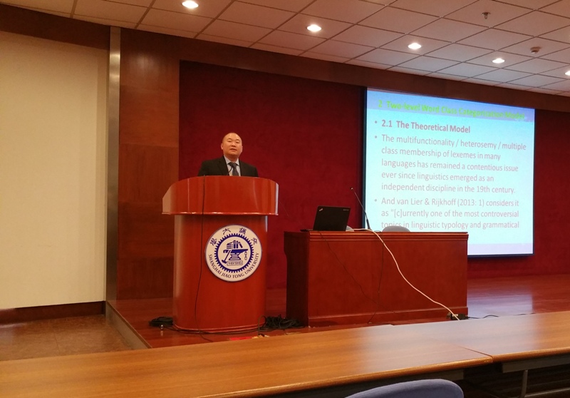 王仁强教授应邀出席第29届亚太语言信息与计算会议 并做大会特邀报告 2015年10月30日至11月1日,第29届亚太语言信息与计算会议(PACLIC 29)在上海成功举办。本届大会由上海交通大学计算机科学与工程系承办,来自美国、日本、法国、韩国、澳大利亚、新西兰等23个国家的110余位学者应邀出席大会。近年来,我校博士生导师、 院长、学科办主任兼词典学研究所所长王仁强教授在现代汉语等分析语词类问题研究方面取得重要突破,他所提出的分析语双层词类范畴化模型引起语言学和计算机自然语言处理等领域专家的密切关注,并获得第29届亚太语言信息与计算会议组委会的特别邀请,与来自法国、日本、中国大陆和香港著名高校或研究机构的其他4位学者一起做大会发言。王仁强教授的大会特邀报告被安排在10月30日下午进行,时间为45分钟,题目是:Two-level Word Class Categorization Model in Analytic Languages and Its Implications for POS Tagging in Modern Chinese Corpora(分析语双层词类范畴化模型及其对现代汉语语料库词性标注的启示)。 王仁强教授首先指出,范畴化是语言学研究的核心问题,但是近400年来汉语、英语、汤加语等上千种分析语(analytic languages)的词类范畴化问题成为一个哥德巴赫猜想式的理论难题,而在汉语/汉外词典编纂和中文计算机自然语言处理等应用领域,词类标注是一个极端重要但又亟待完善的基础工程,并直接影响汉语国际化战略的有效实施。接着,他简要介绍了自己近年来基于复杂适应系统语言观所提出的分析语双层词类范畴化理论模型,同时指出:国内外众多学者之所以在词类范畴化理论研究中容易犯以偏概全、自相矛盾、偷换概念等逻辑错误,在汉语/汉外词典和汉语语料库词类标注实践中之所以经常出现自相矛盾、相互矛盾的现象,关键就在于没有正确把握社群语言系统层面词库中概括词的词类范畴化和言语层面句法中词例的词类范畴化之间所存在的区别和联系。最后,他详细介绍了双层词类范畴化理论模型对现代汉语语料库词性标注的应用启示。据悉,王仁强教授大会发言的主要内容是其主持的国家社科基金项目成果之一。 王仁强教授所作的大会特邀报告理论视角新颖,研究数据扎实,不仅准确指出了目前存在的理论困境与应用难题,同时又针对性地提出了解决方案,引起与会专家的强烈兴趣。法国国家科学研究院(CNRS)语言与言语实验室主任、艾克斯-马赛大学大脑和语言研究院院长Philippe Blache教授等多位专家与王仁强教授进行了热烈的探讨。11月1日上午,王仁强教授还应邀主持了Philippe Blacke教授的大会主题报告。 ( 供稿) 背景知识:亚太语言信息与计算会议(Pacific Asia Conference on Language, Information and Computation)是计算机自然语言处理领域一个历史悠久、影响较大的国际学术会议。参会论文筛选严格,每篇参会论文都必须经过大会学术会员会3名匿名评审专家评阅打分,评审通过率一般不超过30%。最近7年来,PACLIC会议论文已被当今世界最大的文摘和引文数据库SCOPUS所收录。根据谷歌学术计量(Google Scholar Metrics)分析,过去5年间PACLIC会议论文的期刊H5指数为8,期刊H5中位数为13,与A&HCI和SSCI所收录的语言学期刊的H指数相当。第29届亚太语言信息与计算会议网址为:http://bcmi.sjtu.edu.cn/~paclic29/。第30届亚太语言信息与计算会议将于2016年10月在韩国外国语大学(Hankuk University of Foreign Studies)举行。