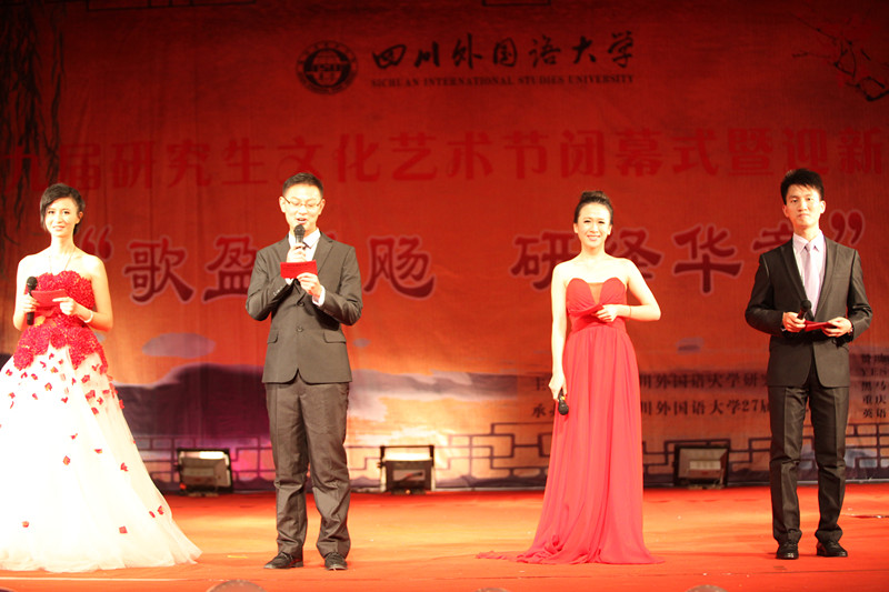 2013年12月10日晚19点,由 主办、第27届研究生会承办的四川外国语大学第九届研究生文化艺术节闭幕式暨迎新晚会在东区大礼堂拉开帷幕。校长李克勇,副校长李小川,各院系、职能部门负责人及 领导莅临晚会现场。