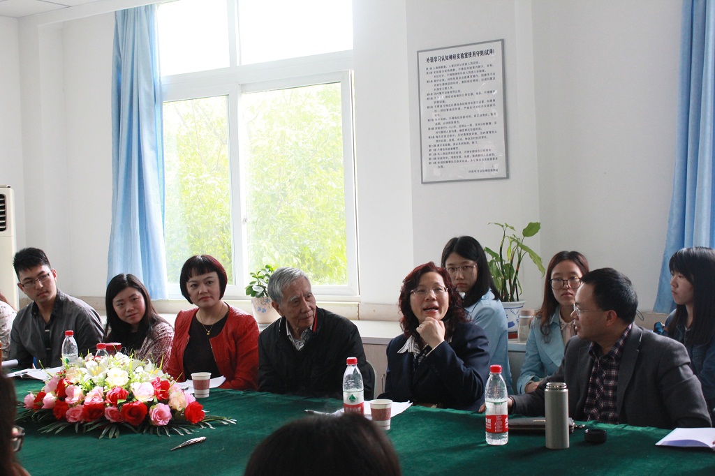 川外学坛举行题为“语言神经认知之约”的学术讨论会 2016年4月24日上午9:00,川外学坛在博文楼四楼举行“语言神经认知之约”学术座谈会,主讲人为河南大学徐盛桓教授。本次座谈会由廖巧云教授主持,四川外国语大学姜孟教授、张鹏副教授出席,此外各年级博士、硕士研究生参加了此次座谈会。 此次学术座谈会分为四个部分。首先,川外学坛主席潘雪瑶同学从学坛历程、宗旨、组织构架以及常规活动等四个方面介绍了川外学坛。紧接着,2013级研究生田莉莉同学从实验室概况和阶段性研究成果等两方面简要介绍了四川外国语大学外语学习认知神经实验室。 接下来,2013级研究生潘翔、谭志鹏、乔瑒等同学分别汇报了自己的毕业论文实验设计《基于ERPs技术的汉语隐喻心物随附性主特征提取研究》、《基于ERPs技术的汉语双关句识解机制的实证研究》及《基于ERPs的汉语转喻修辞心物随附性主特征提取研究》。此后,徐盛桓教授对他们的实验设计提出了指导性的建议。首先,徐教授对几位同学的研究给予了充分的肯定。他表示,现今的语言认知转向不单要靠认知心理科学研究,还需依赖大脑科学研究;其中,大脑意识对世界进行感知就产生了心物随附性。接着,徐教授提到,心物随附性的展现形式分为经验型与实证型。在实际生活中,人们往往只提取一个或两个最重要的可能性特征,凭借经验就可理解语言表达的意义,而实证型的心物随附性则是指人们对事物进行的生理性研究,如ERPs、fMRI等研究。最后,徐教授还提出了三点建议。第一,我们的研究不能仅局限于用心物随附性这一理论基础来进行解释,而应通过实证研究去检验、改进这一理论。第二,实验设计要严谨可靠,实验材料的选取要经得起推敲。第三,我们要多关注学术前沿,了解最新的学术动向。廖巧云教授和姜孟教授也分别做了评点,发表了建设性意见。 本次学坛活动在热烈的掌声中落下帷幕。 2014级研究生 谭佳佳 (报道) 附:照片 1. 廖巧云教授主持