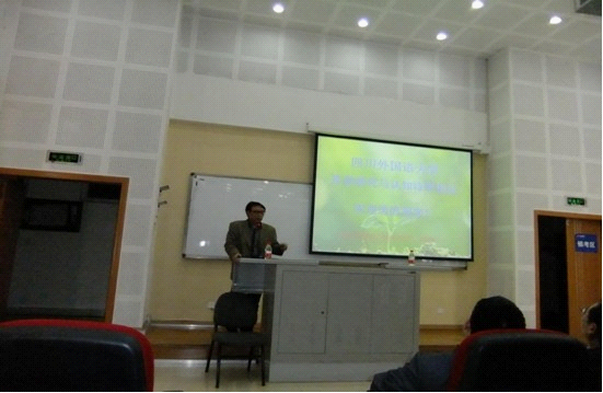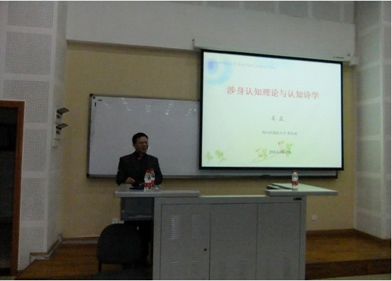 第三十七期界面研究与认知诗学论坛于2014年3月19日晚,在四川外国语大学国际大厦1314报告厅举行。此次活动特邀重庆师范大学外国语学院院长吴显友教授和四川外国语大学姜孟教授做了主题报告,由熊沐清教授主持,胡安江教授、赵永峰博士等老师和同学参加了此次论坛。