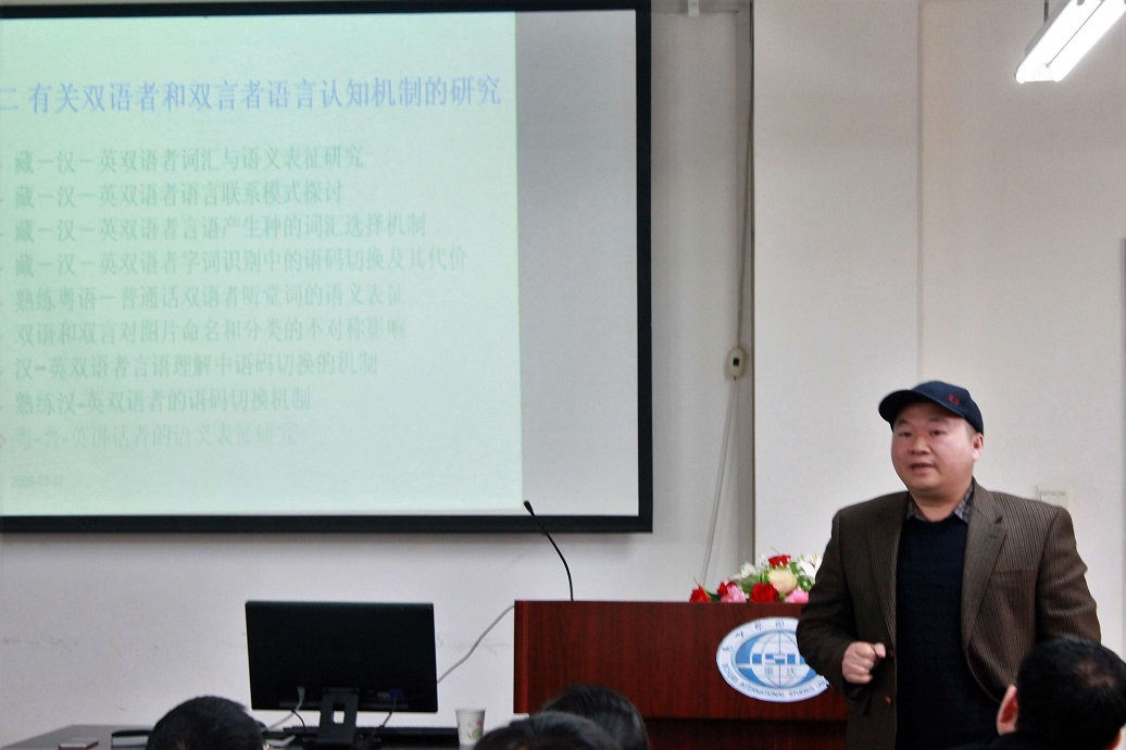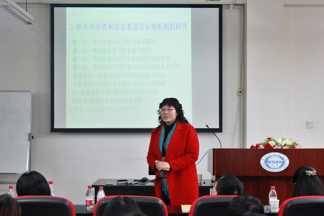 应我校 邀请,著名心理学家、中国人民大学博士生导师张积家教授于2017年3月16日下午16:00在博文楼六楼学术报告厅举行了题为“双语者和双言者的语言认知机制探讨”的学术讲座。讲座由王仁强教授主持,我校廖巧云教授、姜孟教授、赵永峰教授、刘玉梅教授、董瑶瑶教授等出席。此外,校内外青年教师以及近百名博士生、硕士研究生参加了本次学术活动。