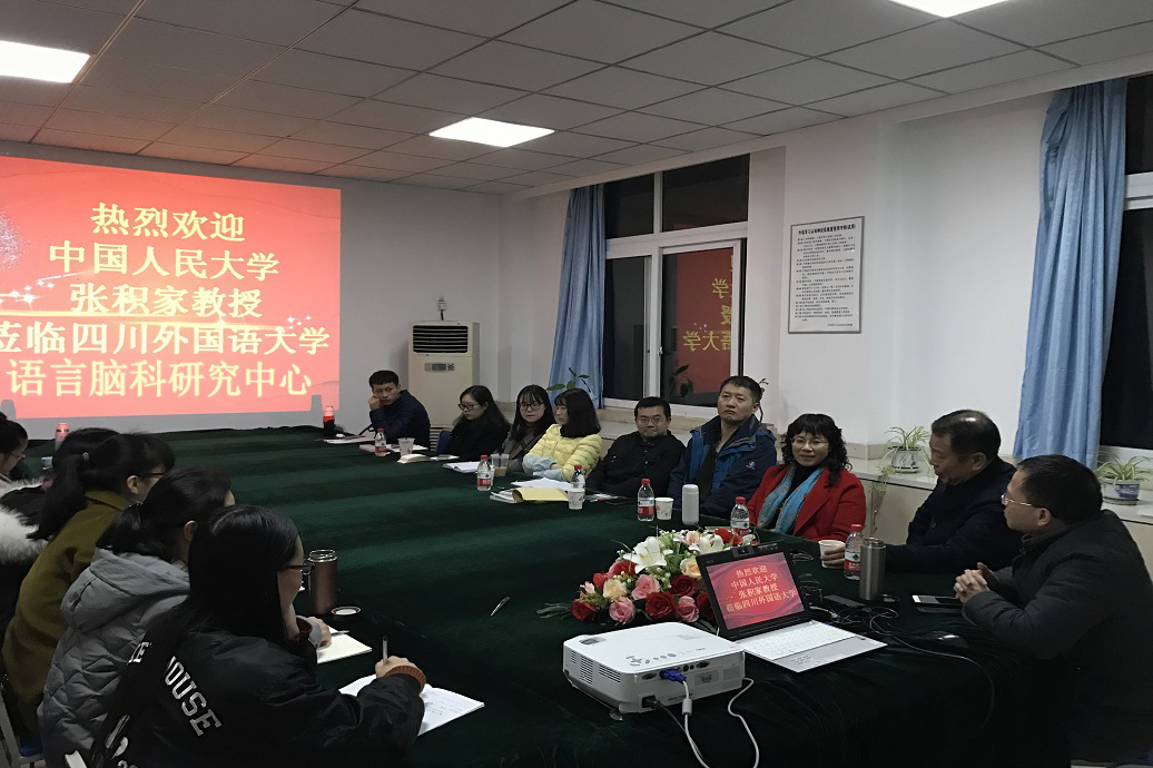 3月16日晚上8:30,张教授还出席了在博文楼406会议室举行的“语言认知研究名家谈”学术座谈会。此次座谈会由姜孟教授主持,廖巧云教授出席,我校部分博士生及硕士研究生参加了此次活动。在听取了语言脑科学研究中心关于近年来我校认知神经语言学建设与发展现状、语言病理学人才培养与学科建设构想等方面的汇报后,张积家教授对“川外学坛”以及我校“语言脑科学研究中心”所开展的工作给予了高度肯定。张教授指出,四川外国语大学的语言脑科学、认知心理学研究在学界占有举足轻重的地位,在推进我国语言建设发展方面起着重要的作用。语言病理学的学科建设充分利用了学校的优势,抓住了语言发展的契机,具有非常光明的发展前景。张教授认为,四川外国语大学创造性地建设语言病理学学科,是高瞻远瞩、开拓开创之举。与此同时,张教授对语言病理学学科建设提出了重要建议,并建议我校借鉴其他院校成功经验,建设语言病理学系,完善机构设置,加强团队梯度建设,加大论文产出比重,增强学科影响力;根据国家和社会需要,关注老年人语言问题和弱势儿童的语言问题。同时,少数民族作为我国的重要组成部分,其语言发展也应特别关注。最后,姜孟教授和廖巧云教授也相继发表了自己的感想,并对张教授的指导建议表示衷心的感谢。
