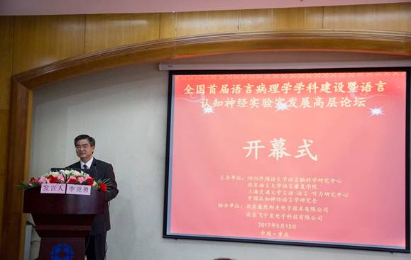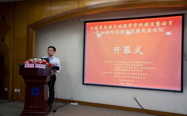 2017年5月13日至14日,“全国首届语言病理学学科建设暨语言认知神经实验室发展高层论坛”在四川外国语大学隆重召开。来自香港教育大学、上海交通大学、北京语言大学、北京外国语大学、大连理工大学、南京师范大学、山东大学、昆明医科大学、重庆医科大学、第三军医大学、重庆师范大学等60余所高校,以及中国残疾人康复协会、上海市精神卫生中心、北京博爱医院、中日友好医院、北京解放军总医院康复医学中心、重庆医科大学附属第一人民医院、四川省八一康复中心、深圳市第二人民医院、重庆市九龙坡区人民医院等10余所康复、医疗机构的70余名代表共襄此次盛会。